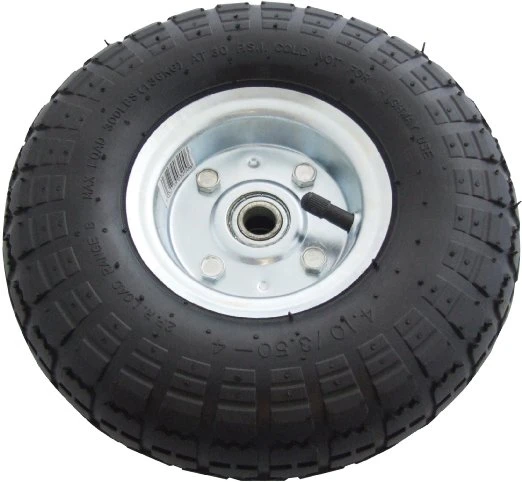 - The wheels have a heavy duty zinc finished metal rim and come complete with bearings and a thick rubber high quality tyre pre-mounted.